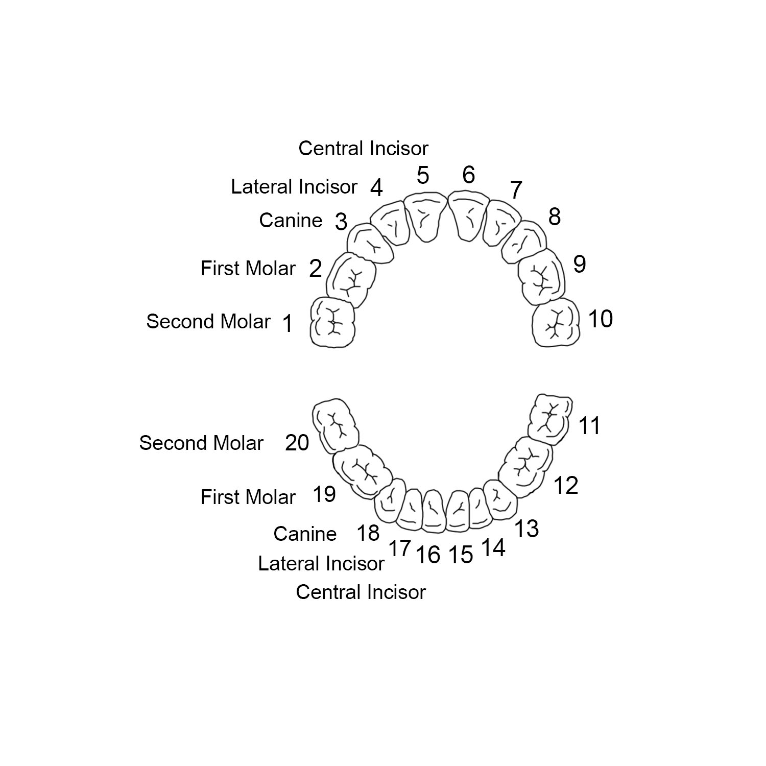 Primary teeth- Primary teeth even known as baby teeth are total of 20. Its starts growing around 3 months and grown till the age of 3. Primary teeth starts to fall from age of 6 and complete fall out at the age of 12. It consists of incisors, canines and molars.