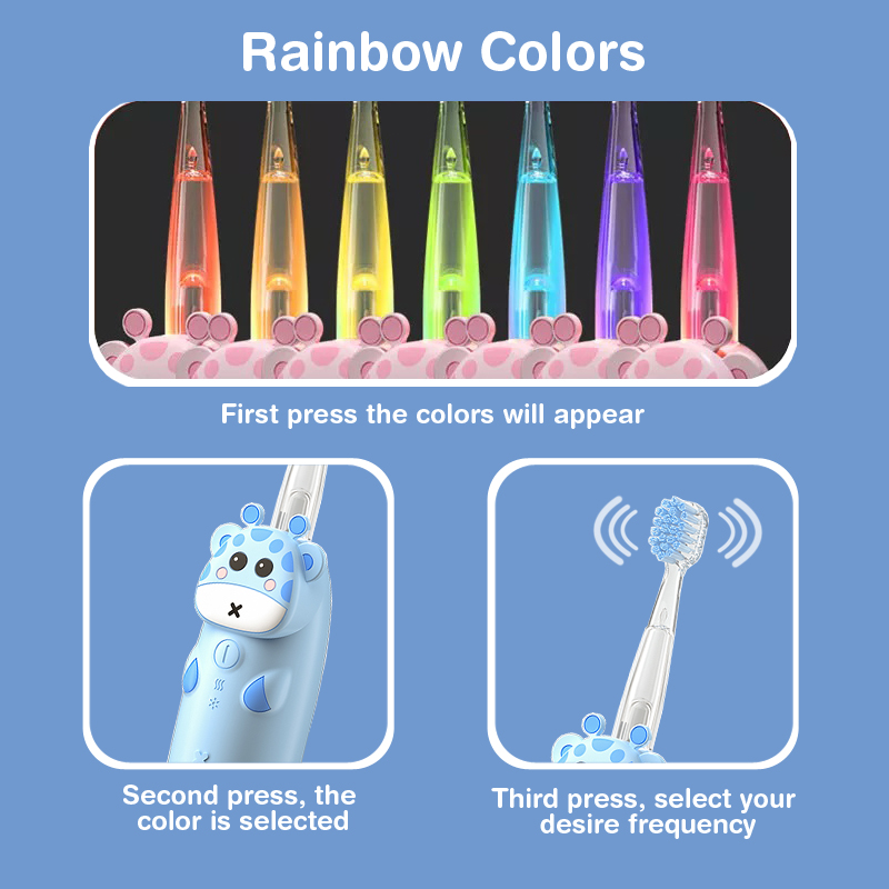 see seven colors of rainbow light up in the brush head making a fun experience